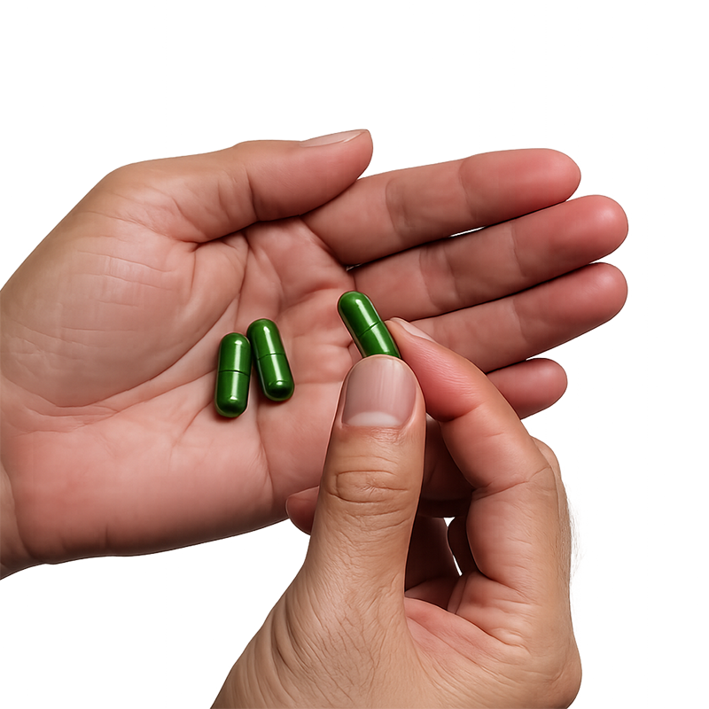 A Green Gold Imune Alga KompleX kapszula 814 mg tömegű, 00-ás zselatin kapszula. Általában napi 6 kapszulányi az ajánlott mennyiség. Naponta elosztva, 2×3, vagy 3 alkalommal 2 kapszula a javaslat. Ha első alakommal szeded az algát, akkor fokozatosan 1-1, majd 2-2, végül 3×2 kapszula az javaslat, 3 hét alatt felépítve a folyamatot.